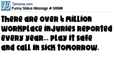 X There are over 4 million workplace injuries reported every year... play it safe and call in sick tomorrow.