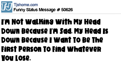 X says I'm Not Walking With My Head Down Because I'm Sad, My Head Is Down Because I Want To Be The First Person To Find Whatever You Lose.