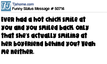 X is Ever had a hot chick smile at you and you smiled back, only that she's actually smiling at her boyfriend behind you? Yeah me neither.