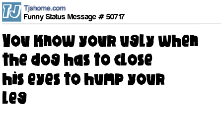 - # 173757 You know you're ugly when my dog has to close his eyes to hump your leg.