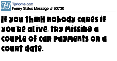 - # 12171 If you think nobody cares if you're alive, try missing a couple of car payments.