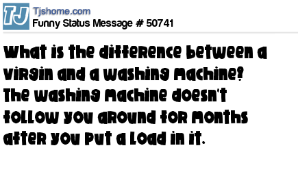 X What is the difference between a virgin and a washing machine? The washing machine doesn't follow you around for months after you put a load in it.