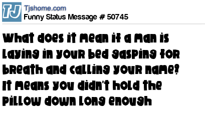 - # 116741 ""What does it mean when a woman is in your bed gasping for breath and calling your name? You didn't hold the pillow down long enough.""
