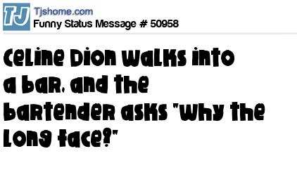 X Celine Dion walks into a bar, and the bartender asks "why the long face?"