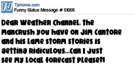 X is Dear Weather Channel, the mancrush you have on Jim Cantore and his lame storm stories is getting ridiculous...Can I just see my local forecast please?!