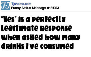 - # 61996 "Yes" is a perfectly legitimate response when asked how many drinks you've consumed.