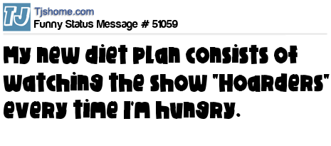 X says My new diet plan consists of watching the show "Hoarders" every time I'm hungry.