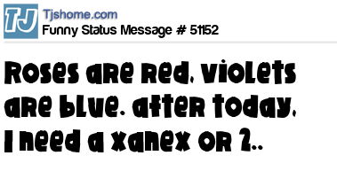 X says Roses are red, violets are blue. after today, I need a xanex or 2..