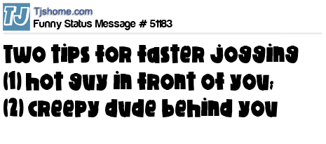 - # 89449 A tip for you joggers out there: To run faster, make sure there is an attractive person in front of you at all times OR a creepy guy behind you.