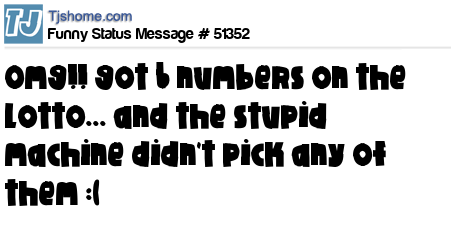 X Omg!! got 6 numbers on the Lotto... and the stupid machine didn't pick any of them :(