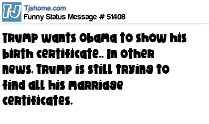 X Trump wants Obama to show his birth certificate.. In other news, Trump is still trying to find all his marriage certificates.