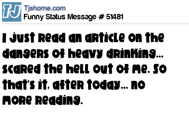 - # 14078 just read an article on heavy drinking and it scared the sh*t out of me! So thats it!! After today no more f*cking reading!!