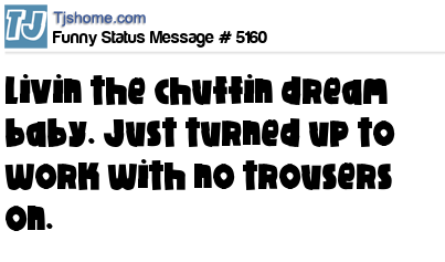 X is livin the chuffin dream baby. Just turned up to work with no trousers on.