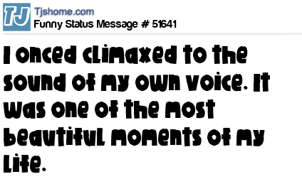 X I onced climaxed to the sound of my own voice. It was one of the most beautiful moments of my life.