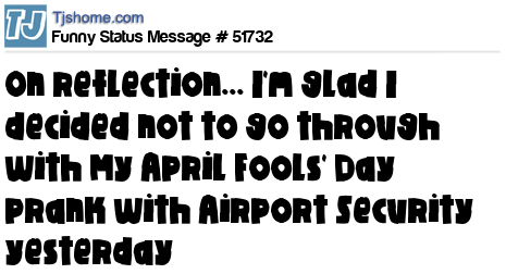 - # 51708 My April Fools' Day prank at airport security did not go well. You may not see me Monday.