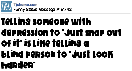 X is Telling someone with depression to "just snap out of it" is like telling a blind person to "just look harder"
