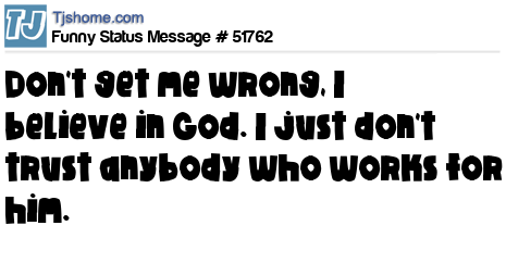 X Don't get me wrong, I believe in God. I just don't trust anybody who works for him.