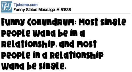 X Funny Conundrum: Most single people wana be in a relationship, and most people in a relationship wana be single.