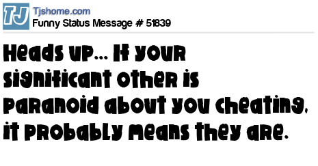 X Heads up... If your significant other is paranoid about you cheating, it probably means they are.