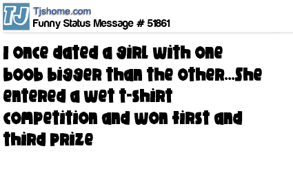 X I once dated a girl with one boob bigger than the other...She entered a wet t-shirt competition and won first and third prize