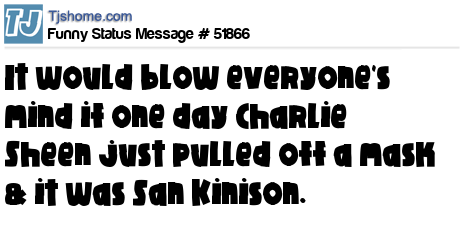- # 51852 It'd blow everyone's mind if one day Charlie Sheen just pulled off a mask & it was Andy Kaufman.