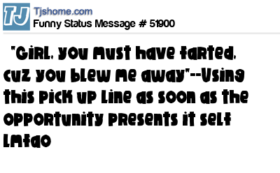 X says "Girl, you must have farted, cuz you blew me away"--Using this pick up line as soon as the opportunity presents it self lmfao