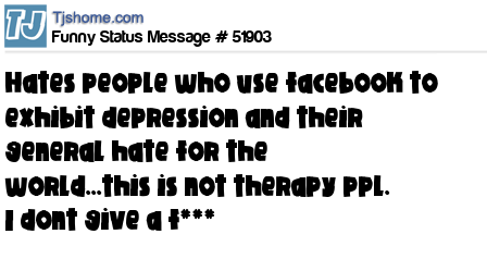 X is hates people who use facebook to exhibit depression and their general hate for the world...this is not therapy ppl. I dont give a f***