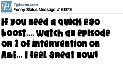 X says if you need a quick ego boost.... watch an episode or 2 of intervention on A&E... I feel great now!