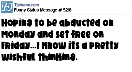 X is hoping to be abducted on Monday and set free on Friday...I know its a pretty wishful thinking.