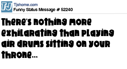X is There's nothing more exhilarating than playing air drums sitting on your throne...