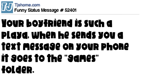 X is Your boyfriend is such a playa, when he sends you a text message on your phone it goes to the ''games'' folder.