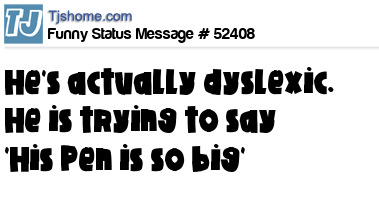 X is He's actually dyslexic. He is trying to say 'His Pen is so big'