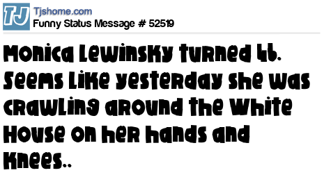 - # 52583 Can't believe Monica Lewinsky is already 38, seems like yesterday she was crawling around the White House on her hands and knees