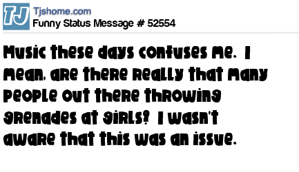 X Music these days confuses me. I mean, are there really that many people out there throwing grenades at girls? I wasn't aware that this was an issue.