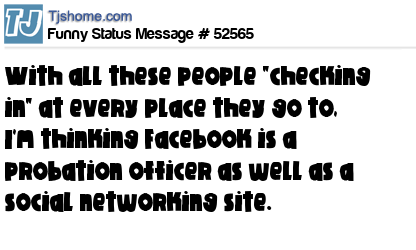 X says With all these people "checking in" at every place they go to, I'm thinking Facebook is a probation officer as well as a social networking site.