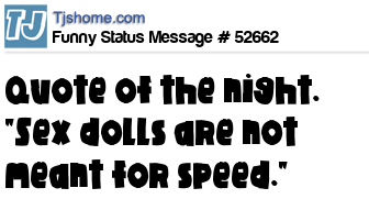 X  Quote of the night. "Sex dolls are not meant for speed."