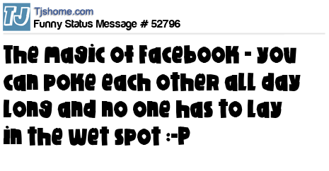 - # 114594 The magic of Facebook... you can poke each other all day long... and no one has to lay in the wet spot.