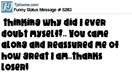 X is thinking why did I ever doubt myself?.. You came along and reassured me of how great I am..thanks loser!