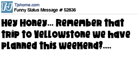 X Hey Honey... Remember that trip to Yellowstone we have planned this weekend?....