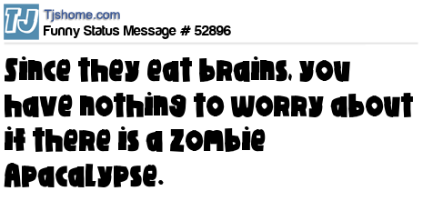 X says Since they eat brains, you have nothing to worry about if there is a Zombie Apacalypse.