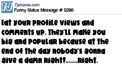 X says eat your profile views and comments up. They'll make you big and popular because at the end of the day nobody's gonna give a damn right?........right.