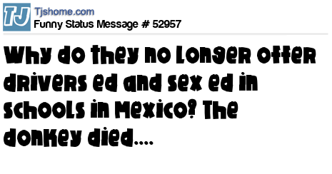 X Why do they no longer offer drivers ed and sex ed in schools in Mexico? The donkey died....