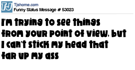 - # 54559 I'm trying to see things from your point of view But I can't stick my head that far up my Ass