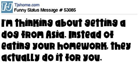 X I'm thinking about getting a dog from Asia. Instead of eating your homework, they actually do it for you.