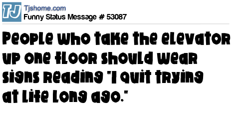 X People who take the elevator up one floor should wear signs reading "I quit trying at life long ago."