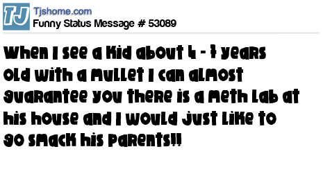 X is When I see a kid about 4 - 7 years old with a mullet I can almost guarantee you there is a meth lab at his house and I would just like to go smack his parents!!