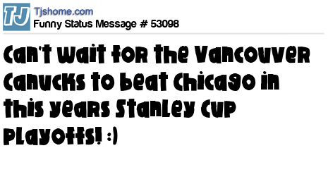 X Can't wait for the Vancouver Canucks to beat Chicago in this years Stanley Cup playoffs! :)