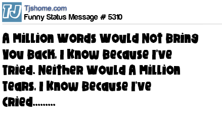 X A Million Words Would Not Bring You Back, I Know Because I've Tried. Neither Would A Million Tears, I Know Because I've Cried.........