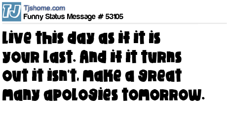 - # 105222 Live this day as if it is your last...And if it turns out it isn't, make many apologies tomorrow.