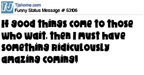 - # 137722 If good things come to those who wait,then I must have something ridiculously amazing coming...